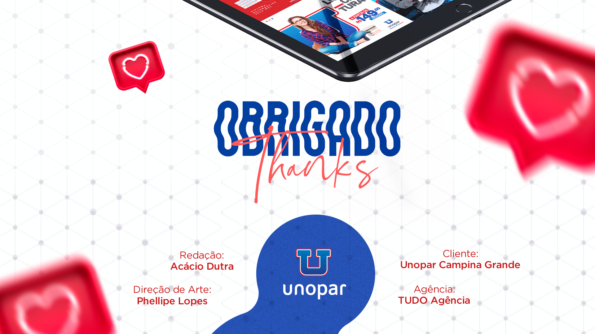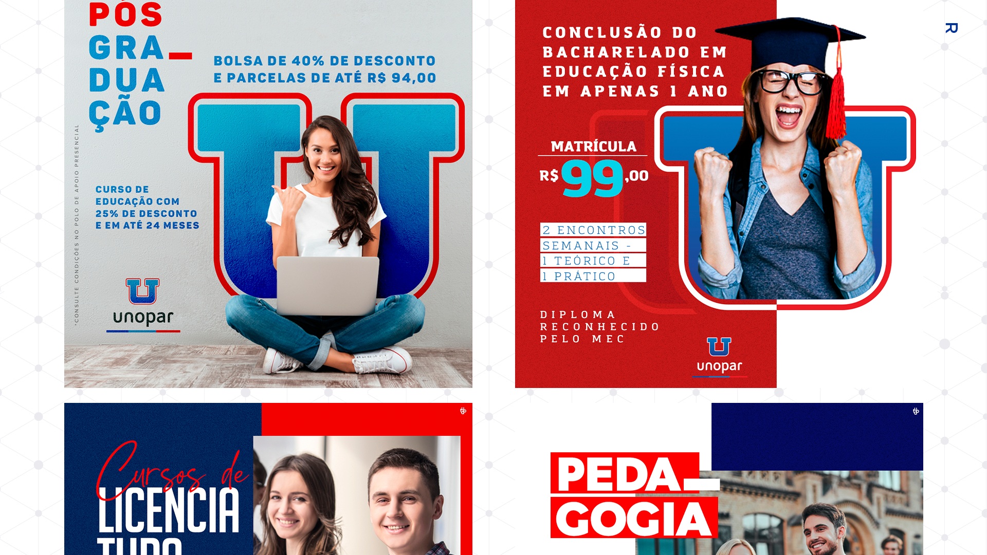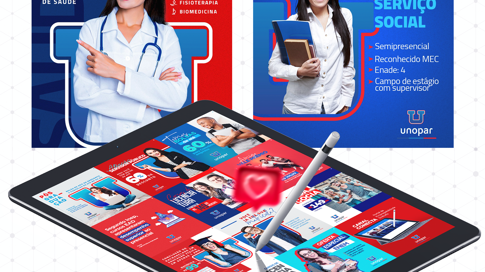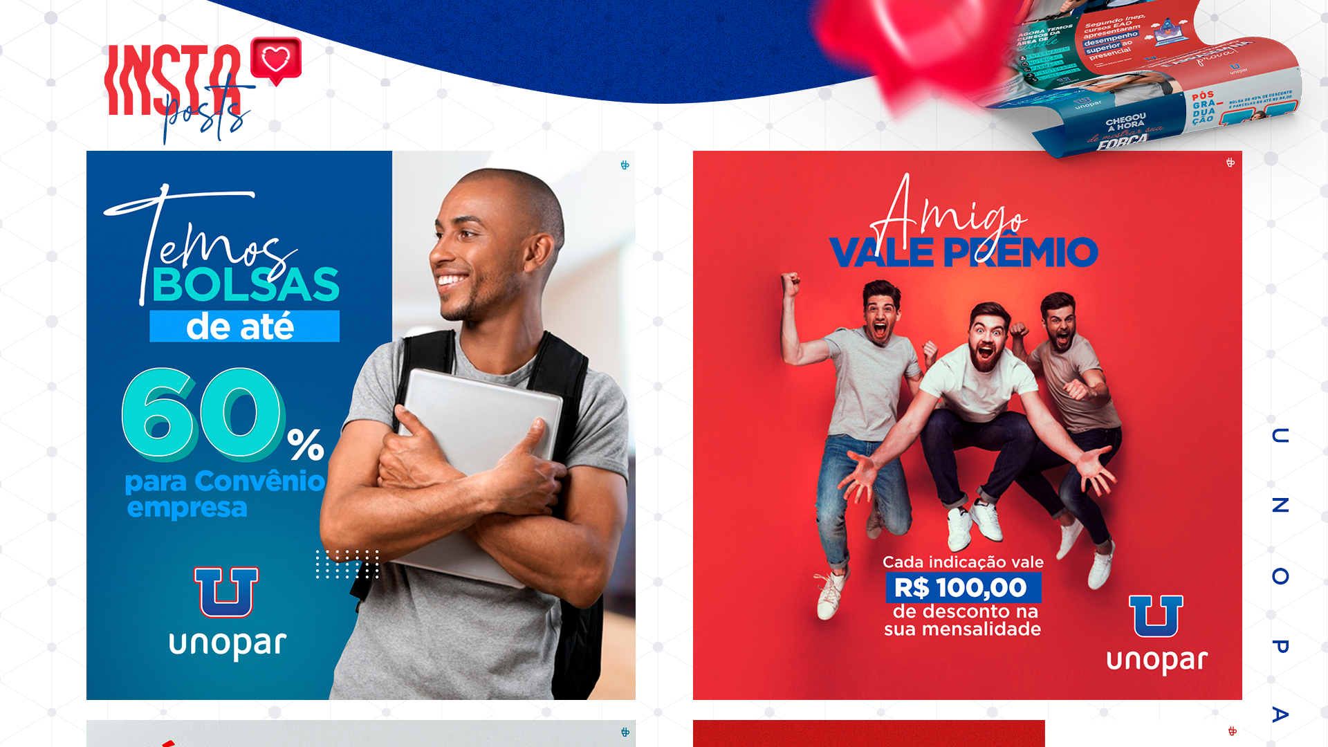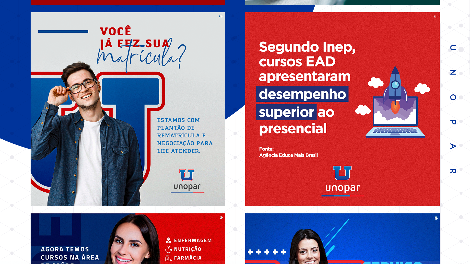 Peças gráficas para redes sociais da Unopar, desenvolvidas pela TUDO Agência.